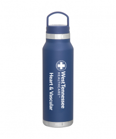 25 oz double wall 18/8 stainless steel thermal bottle with copper vacuum insulation, threaded insulated lid with carrying handle, high polish accent, stainless steel base, and powder coated finish. Hand wash recommended; Do not microwave. Dimensions: 10 H x 3".
